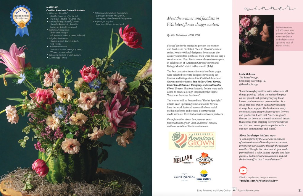 Enter for your chance to win a Florist Spotlight feature in Florists’ Review magazine AND win a $500 credit for beautiful American Grown Flowers provided by our sponsors.