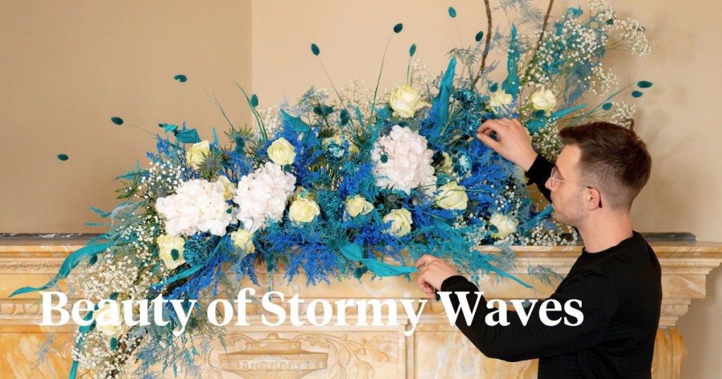 The inspiration for my flower design was Princess Daisy’s diaries and the words she wrote down – nothing shows me the essence of existence more than a storm at sea. In my work, I tried to present the turbulence of storm waves and the unpredictability and beauty of nature with flowers. the wave structure was made of birch shoots intricately connected to create a stable base for placing the flowers.