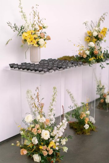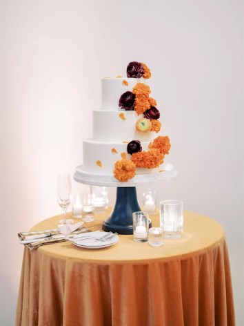 The leaves start to change colors in the Northwest and Midwest in mid-September or near the end of the month. So, if you’re throwing a late September wedding in one of these regions, an autumnal color palette with deep tones will augment the season and setting. In particular, Endale loves combining burgundy and orange to mirror the surrounding foliage and produce a cozy, welcoming vibe. Not to mention, these hues have symbolic meanings that are meant for a wedding. “Burgundy, in particular, represents deep love and passion, making it a perfect choice for a wedding celebration,” Endale explains. “Orange is often associated with warmth, friendship, and enthusiasm, all of which are sentiments we wish to highlight during this momentous occasion.”