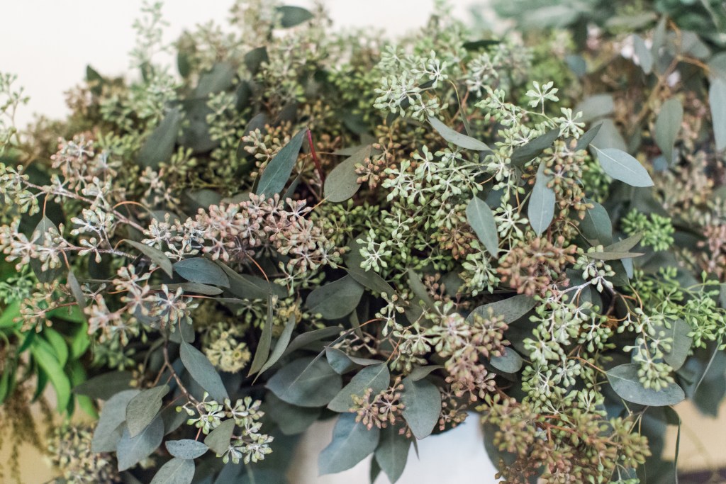 So-called “seeded” varieties of Eucalyptus also add a textural seasonal aesthetic to floral designs. (We say “so-called” because the “operculum,” a.k.a. “calyptra,” are actually flower buds, not seeds.) Finally, for spectacular season flair, don’t forget about the small silver seedpods of E. pleurocarpa (formerly E. tetragona); deciduous branches of blue-gum Eucalyptus seedpods (a.k.a. silver bells, E. globulus); and Eucalyptus gumnuts, which are the woody fruit capsules of gum trees—in particular, E. calophylla (which has been recently reclassified as Corymbia calophylla).