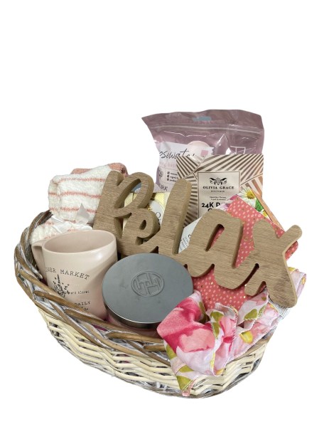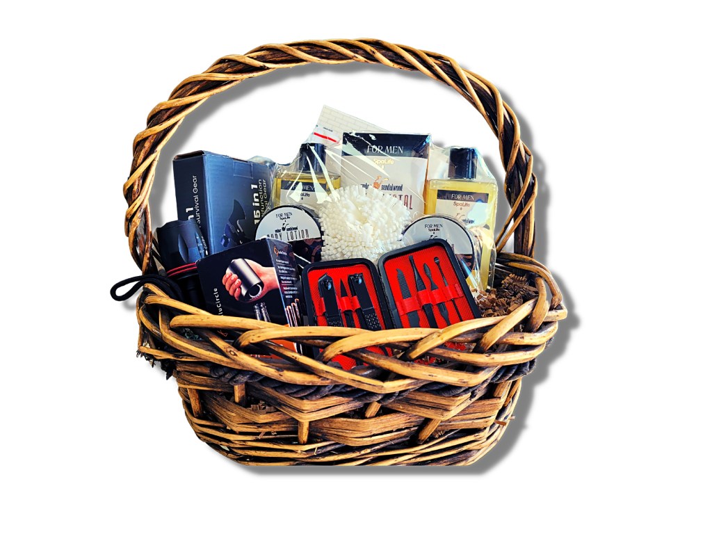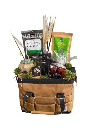 Flowers of Marietta, in Marietta, Ga., offers some creative themed gift collections. For example, its “Relax & Recharge Basket” includes a mug, tea, bath bombs, fuzzy socks, a scarf, face masks and more. The “Men’s Tool Gift Set” comes in a canvas Carhartt tool bag and includes beef jerky, a 15-in-1 multi tool, an LED flashlight, an electric bottle opener, a men’s manicure kit, a live succulent and a balloon. It is perfect when you can find a container that fits the theme for displaying the gift items in.