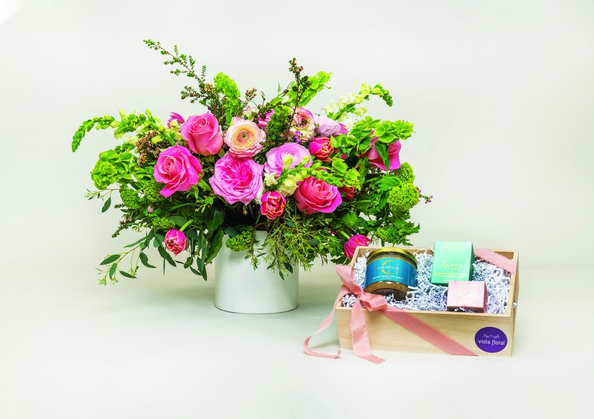 Viola Floral’s best-selling gift package is “Le Box Bespoke,” which enables customers to personalize a gift box by selecting from a curated collection of nine items they feel the recipients will love—plus a lovely seasonal vase arrangement. “Thoughtfulness goes a long way, so the ability to customize gift baskets to complement a recipient’s personality or likes/dislikes is a huge selling point,” Trifunovic says. “Each recipient receives a one-of-a-kind gift that is personalized specifically for her.”