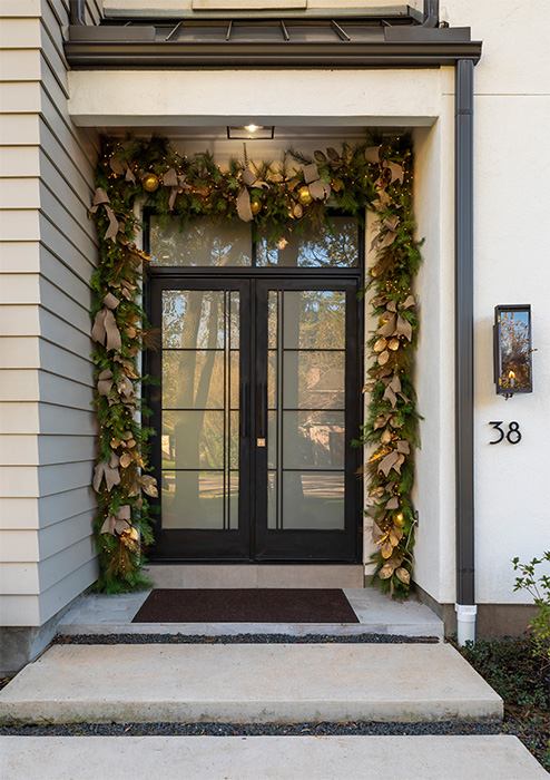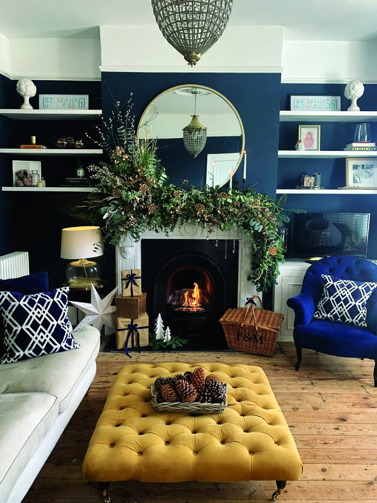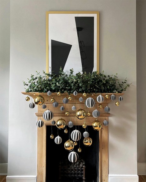 In an embrace of the coziness of shorter days and time spent indoors together, this look is all about celebrating the natural bounty of wintertime in an exaggerated way. Displayed here by U.K.-based designers Sam & Jenny, we see an impressive crescent of evergreens, dried foliages and textural seed pods atop the mantelpiece. To unlock this aesthetic, understand that more is more. Lean into using a variety of greenery and putting in the time to assemble truly custom looks. Winterberries, pine cones, dried citrus slices and kraft-paper wrappings are all welcome additions.