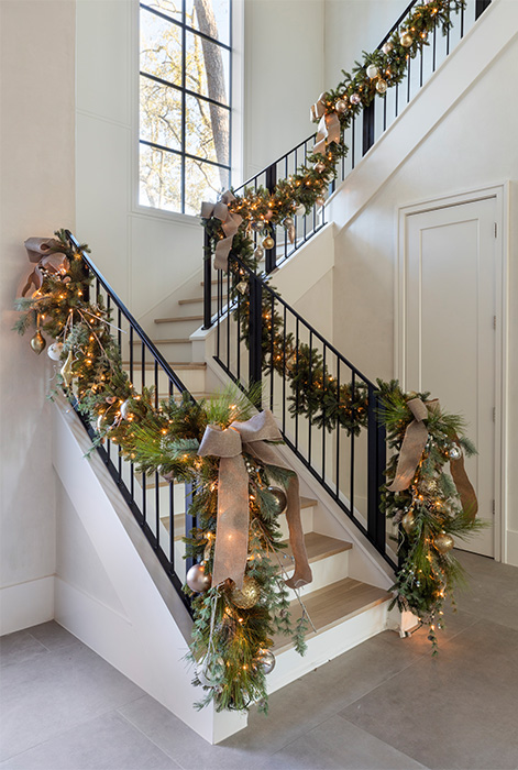 Perfect for the recovering minimalist, this holiday trend is about keeping it simple yet elegant. Pay ode to handmade sophistication by adorning lit evergreen garlands with earth-toned glass embellishments. For maximum sophistication, Regina Gust incorporates the delicate quality of hand-blown transparent glass. For an extra touch of luxe, replace traditional poinsettia plants with live potted orchids.