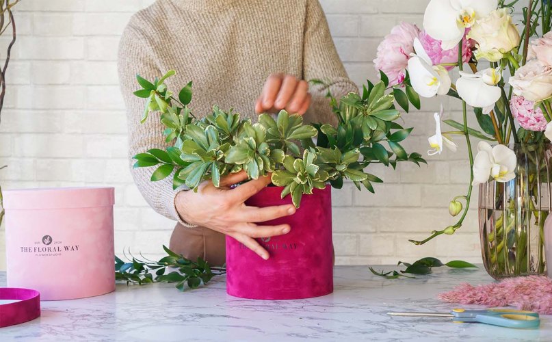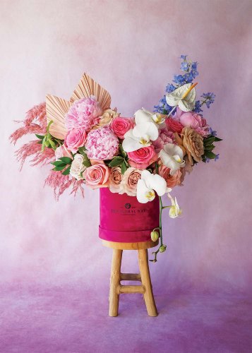 Establishing a “signature style” for your flower business is an important component of creating a unique identity and a successful, recognizable brand. And that’s just what Johnny and Jacob, owners of The Floral Way Studio in Orlando, Fla., have done. In fact, they have originated two style “trademarks” for their flower shop, both of which have come to be instantly recognized by consumers: luxurious hatbox containers and a distinctive crescent-shaped arrangement style, which the duo has christened the “‘V’-shape arrangement.”