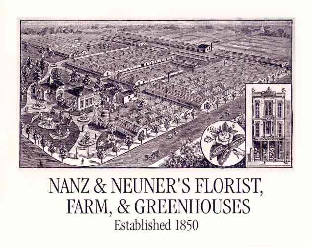 Roses—some 500 varieties—were offered by Nanz & Neuner, with historical sales estimates bragging of millions of units, customers from all over the nation and 25 working greenhouses. By 1880, the firm owned 30 acres of land for growing plants, including 31 greenhouses on 2.5 acres of this land; employed 16 men; and considered themselves wholly involved in the wholesale and retail flower industry.