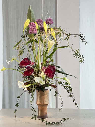 In these three categories of floral designs, the challenge is to learn about the materials we use, to identify the contaminants and to find alternative solutions—creating designs that employ mechanics that can be reused and are easy to install and dismantle, as well as finding techniques that highlight and embrace the use of compostable materials. Floristry requires efficiency to be sustainable; therefore, critical thinking on the making and using of supplies that are convenient and effective while being environmentally friendly is important in each of these challenges. Environmental and eco-sustainable solutions will thrive within the model of open-sourcing—building on the existing collective of shared information through further experimentation. These are the purposes of these design challenges.