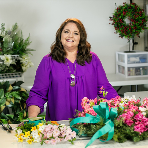 Julie Siomacco is considered the queen of wreath making and do-it-yourself permanent-botanicals florist. A master of producing quality works of art on the fly, with the heart of a teacher, Julie has turned her passion for faux floral design and holiday decorating into Southern Charm Wreaths, a thriving faith-based business that inspires hundreds of thousands of crafty people every day. She’s trained in several product lines and stays up to date on trends, products, techniques and online selling strategies, in order to give her extensive online audience the best advice. She’s been featured online at Martha Stewart Living, Better Homes & Gardens and BloomTV and is the co-founder of “Wreath Makers Live, a conference dedicated to educating wreath sellers all over the world.
