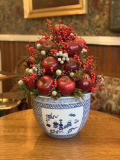MG: Christmas décor in the store is generally minimum because we are busy decorating clients’ homes until the 24th. In the store, we put up an artificial tree usually the weekend before Thanksgiving—artificial because at that time we cannot use a real tree. The romance of fresh trees is wonderful, but they are very unsafe and dirty. When doing clients’ trees, we mostly wear masks because of the dust. Last year, we decorated 12 10-foot-to-14-foot trees. Our tree at home hosts a collection of beautiful jeweled ornaments created by our dear friend Jay Strongwater along with crystal prisms from old chandeliers. When things get too busy, we will have just a big vase of flowering quince, with a few of our favorite ornaments.