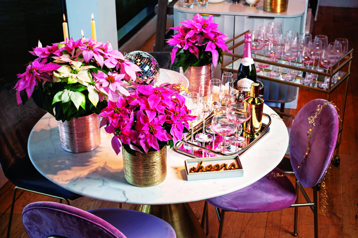 Chris Berg, director of marketing at Dümmen Orange North America, suggests that retailers also consider the ‘J’Adore’ series, particularly the exquisite ‘J’Adore Soft Pink’, all of which can easily be marketed as décor for New Year’s Eve events.